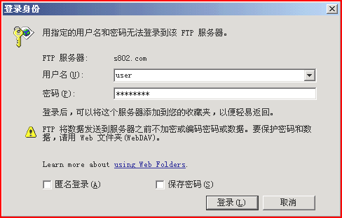 2、选中虚拟主机管理-》管理-》登陆FTP,输入自己的FTP用户名和密码登陆。