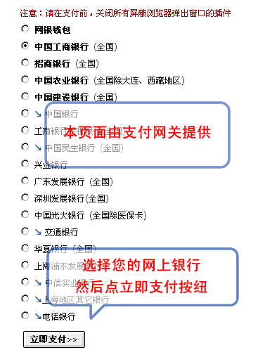 网上支付说明